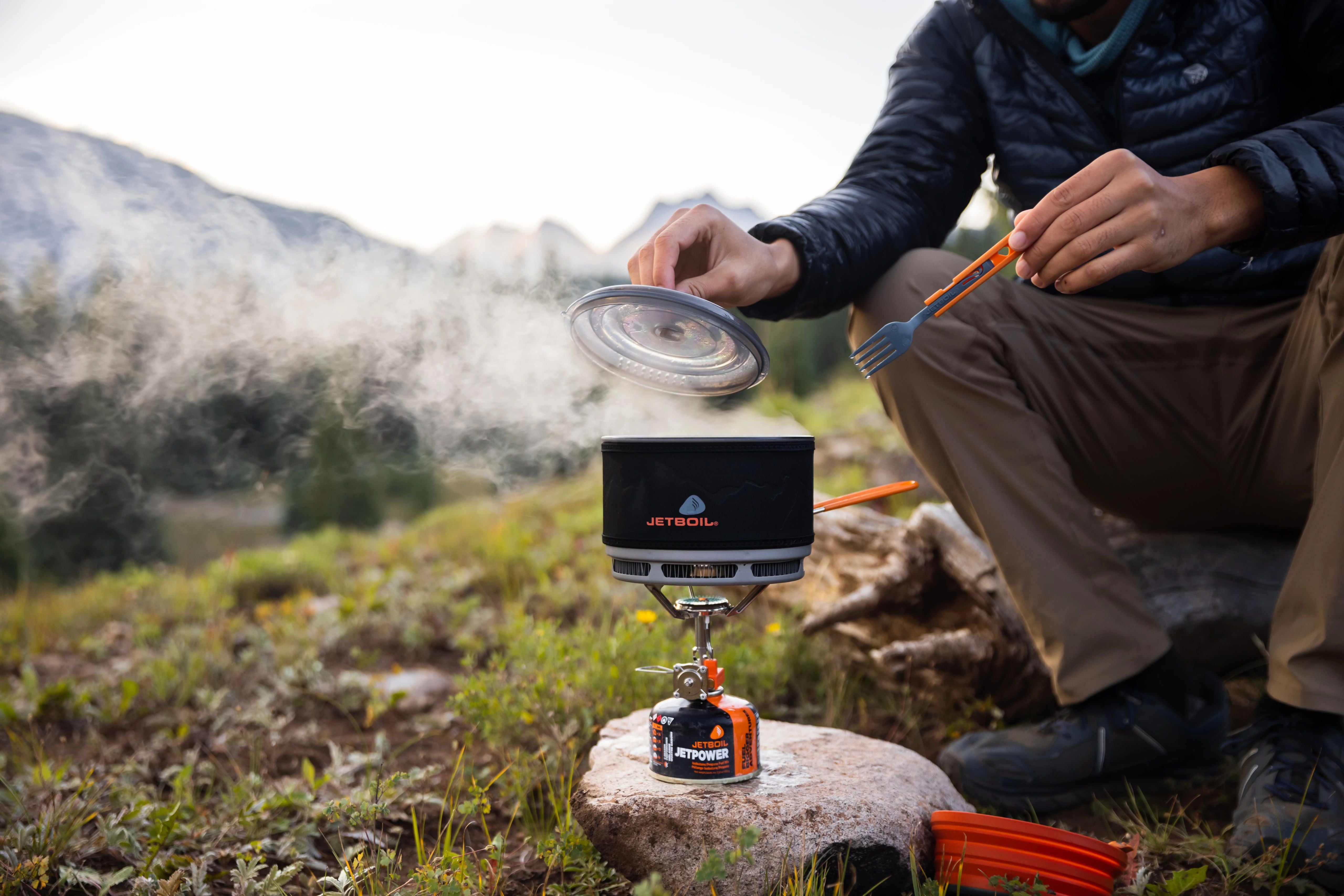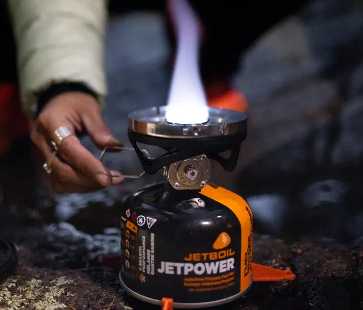 Jetboil regulated stoves allow four full turns of the spindle for incremental adjustment of fuel flow with consistent heat output from light simmer, all the way to rolling boil. That translates to perfectly cooked eggs, golden brown grilled cheese, steamed grains or boiling water for coffee in as little as 135 seconds.